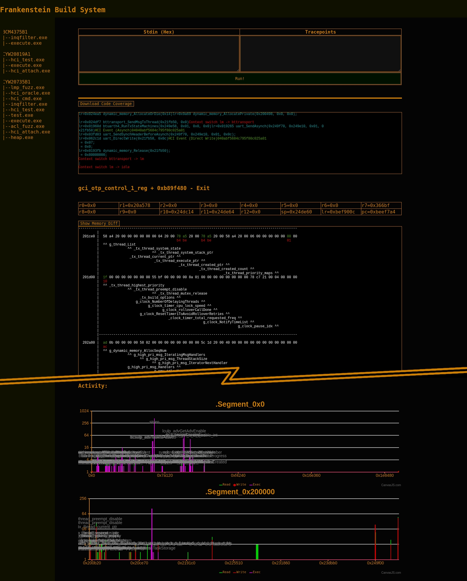 Frankenstein可使用Web接口配置,功能包括符号管理和内存转储,生成文件和链接器脚本均可自动生成。通过python3 manage.py runserver启动服务后,访问本机8000端口完成配置。